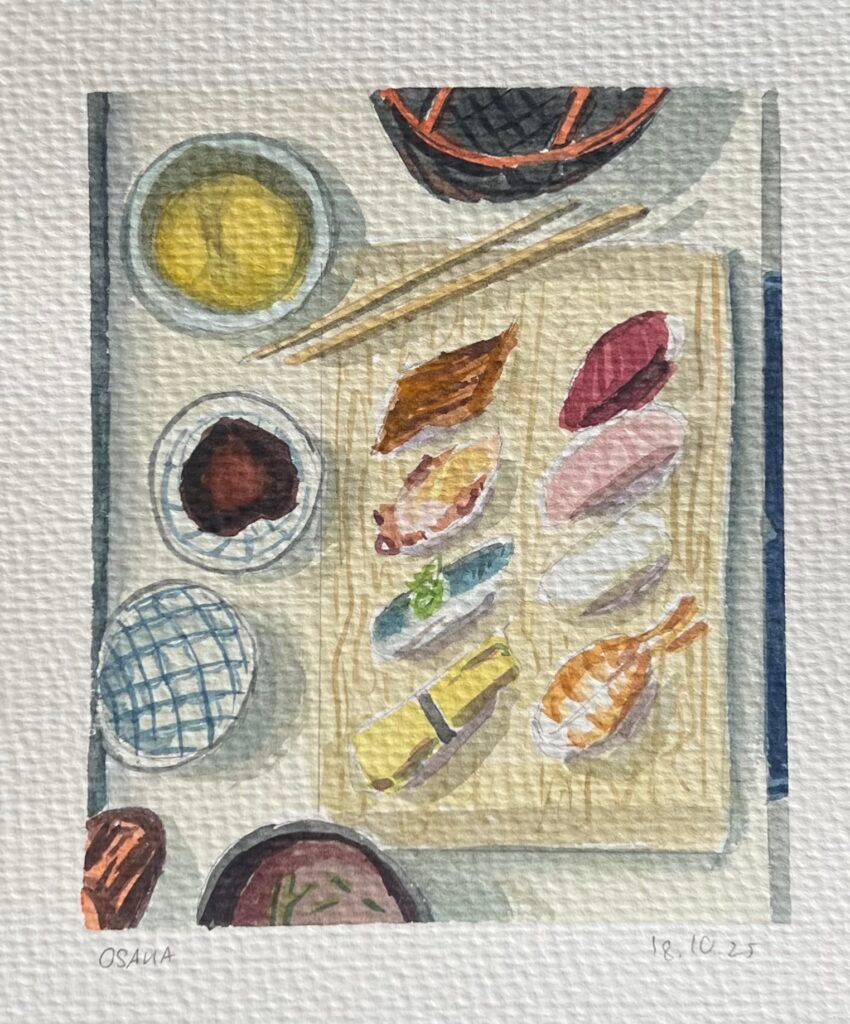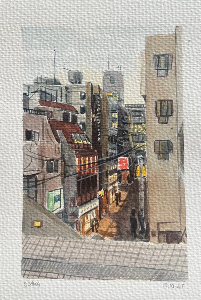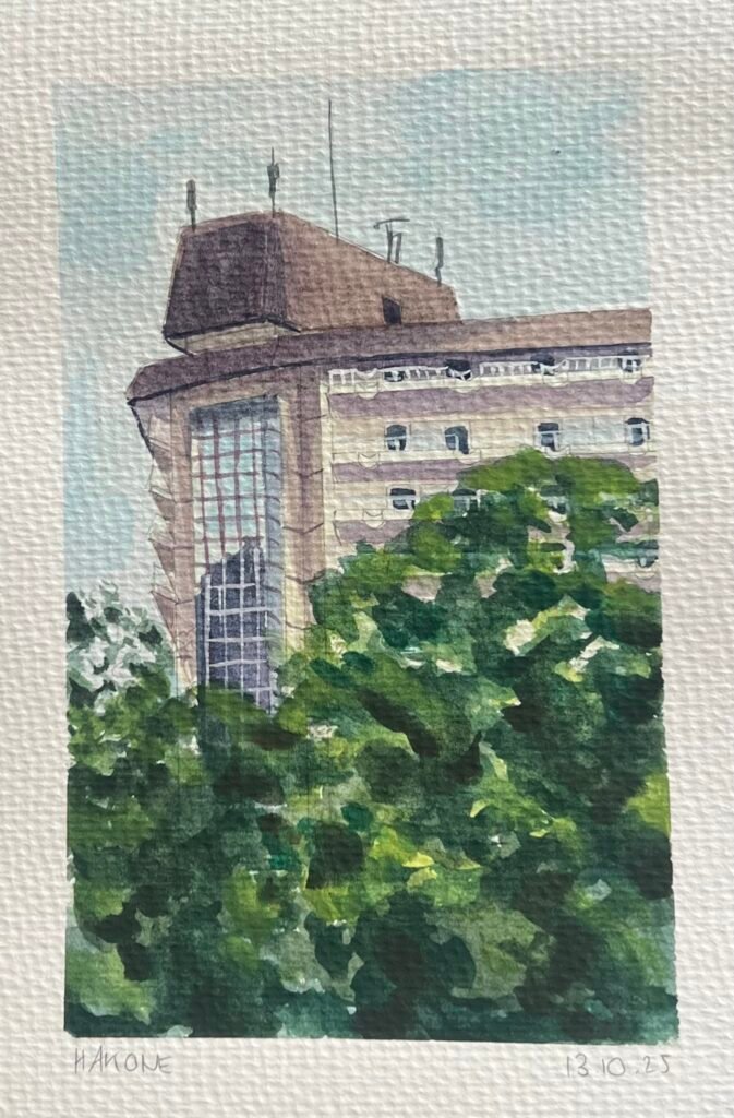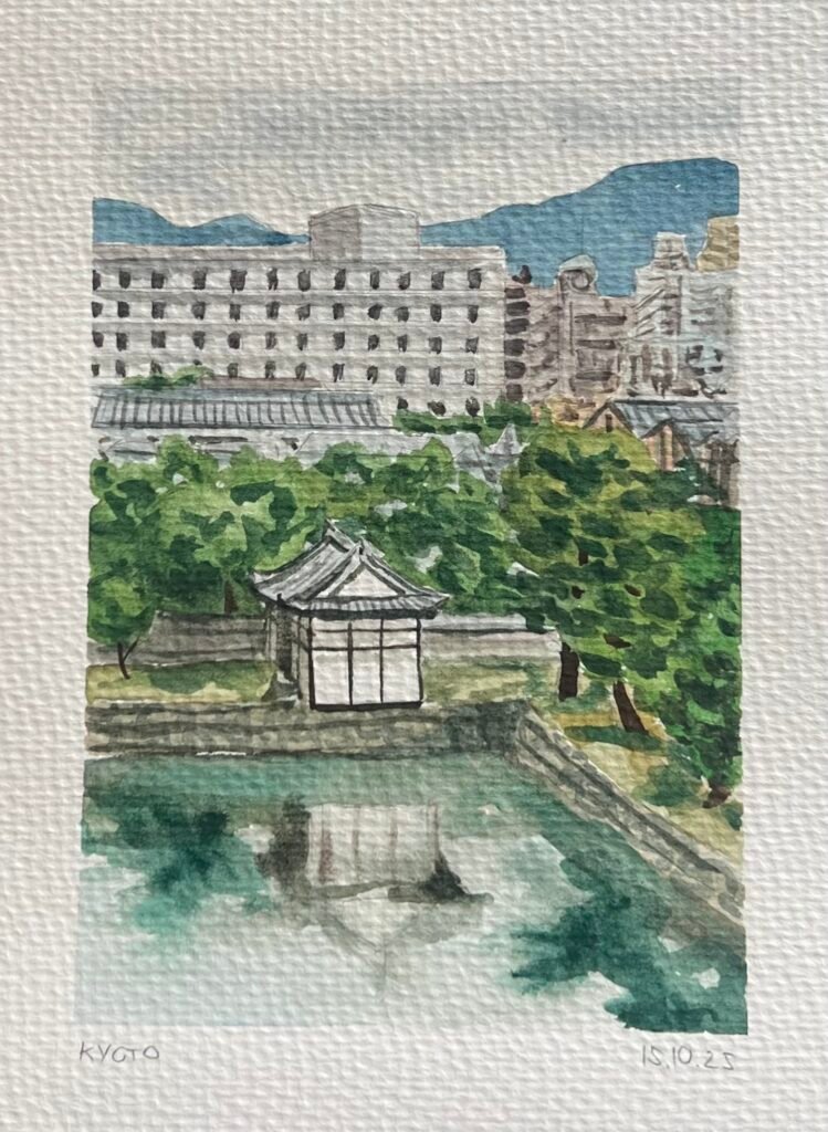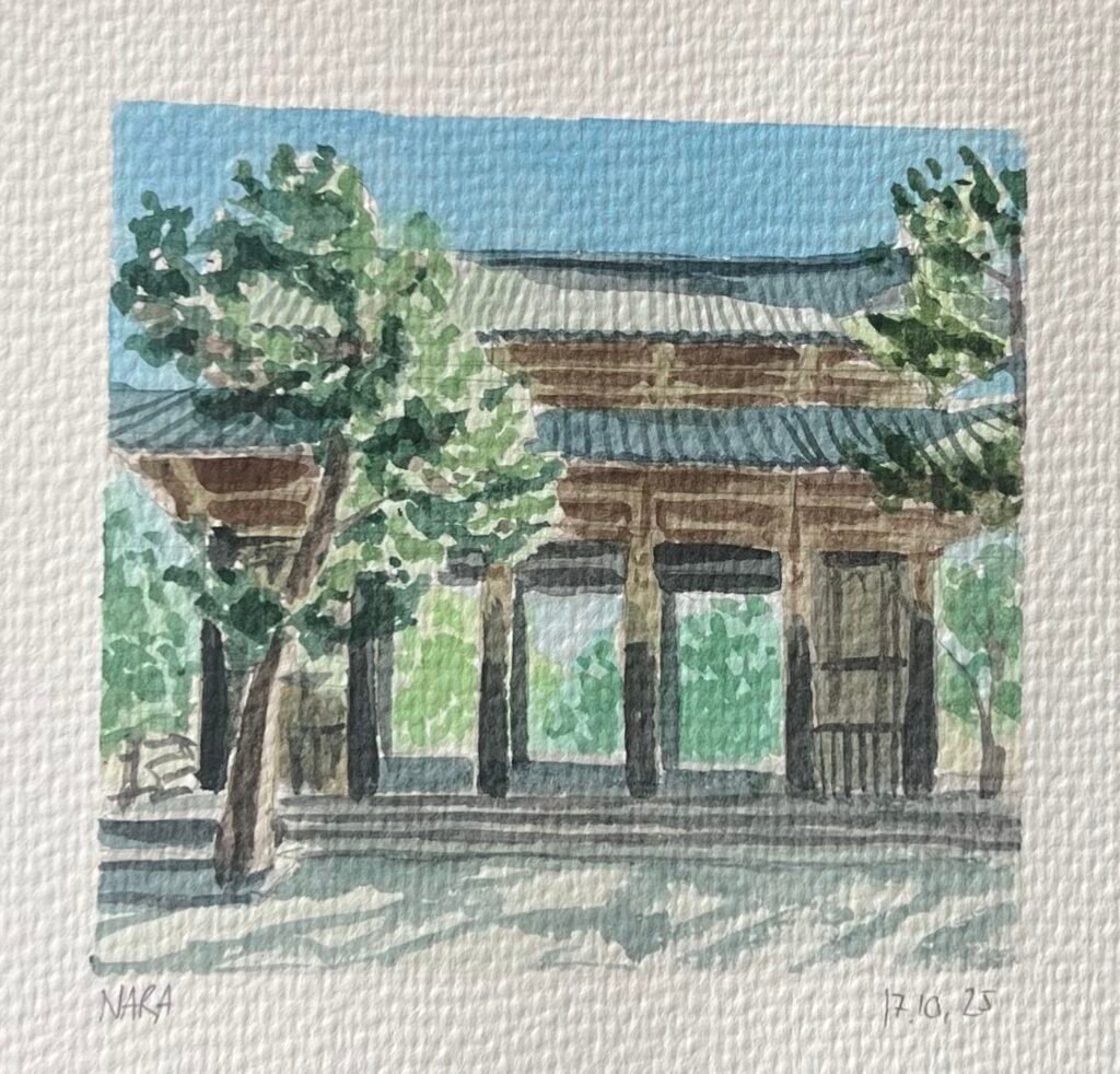 In October 2025, I travelled through Tokyo, Kyoto, and Osaka, with stops in Hakone and Nara along the way. Each day of the journey, I made a watercolour painting inspired by a photo I took that day.