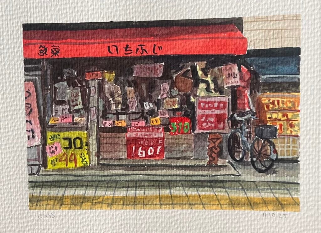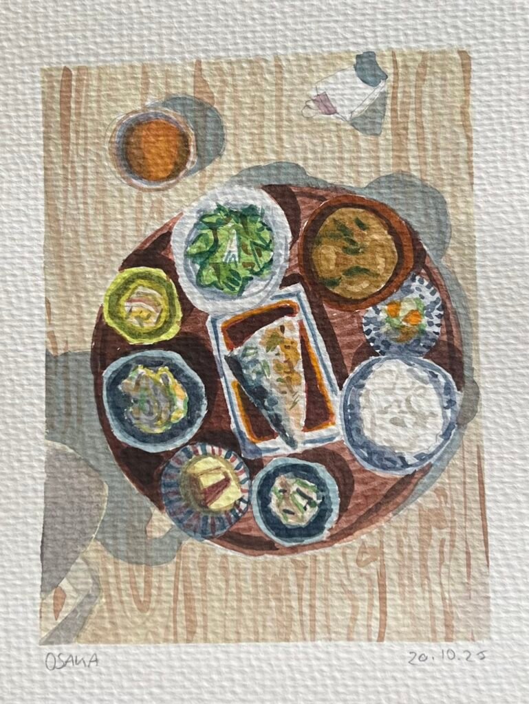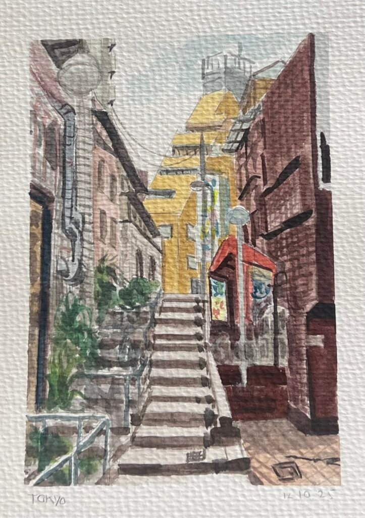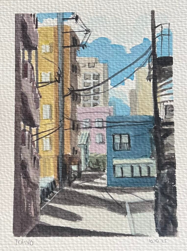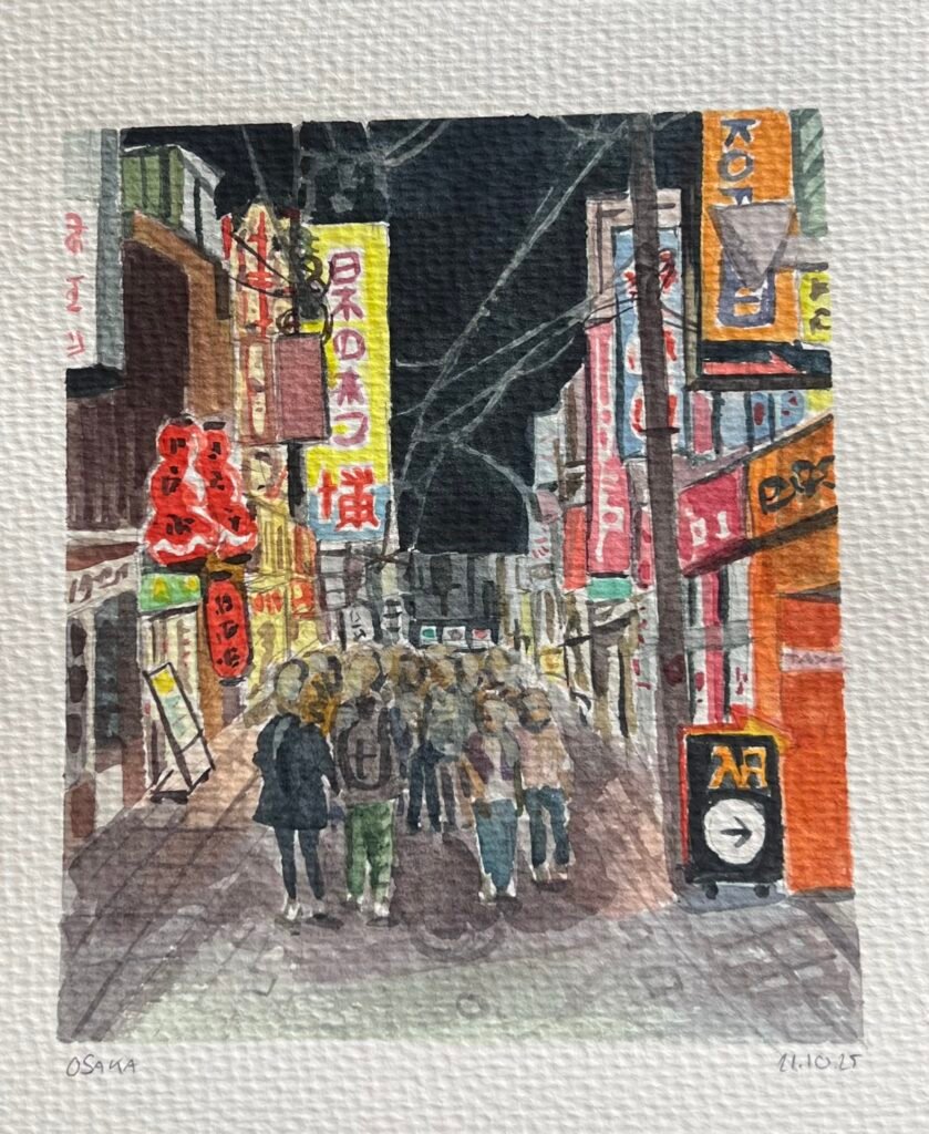 In October 2025, I travelled through Tokyo, Kyoto, and Osaka, with stops in Hakone and Nara along the way. Each day of the journey, I made a watercolour painting inspired by a photo I took that day.